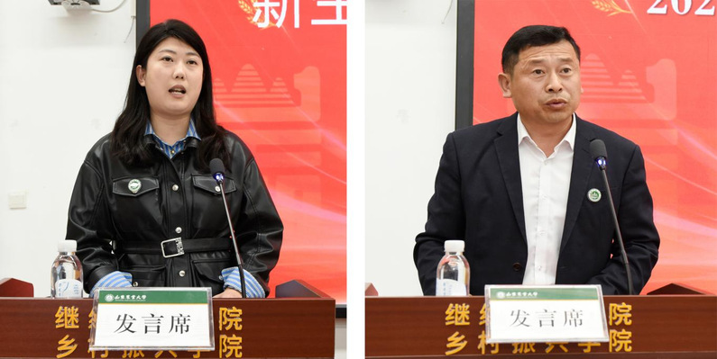 新生代表周妍、苏义强依次登台发言,分享了自己的求学初心与奋斗感悟。周妍以自身经历寄语同窗,学习不分年龄,奋斗不问起点,只要心怀热爱、步履不停,就一定能够在坚持中收获成长,在奔赴中遇见更好的自己。苏义强则用朴实的语言、真切的行动,诠释了新时代奋斗者扎根乡土、深耕农业产业、追求卓越的责任与担当,他勉励全体新生珍惜在山农的求学时光,勤学善思、笃学不倦,做到知行合一、躬身实践,在山农这片孕育希望的沃土上汲取知识养分,不断成长进步、锤炼过硬本领。